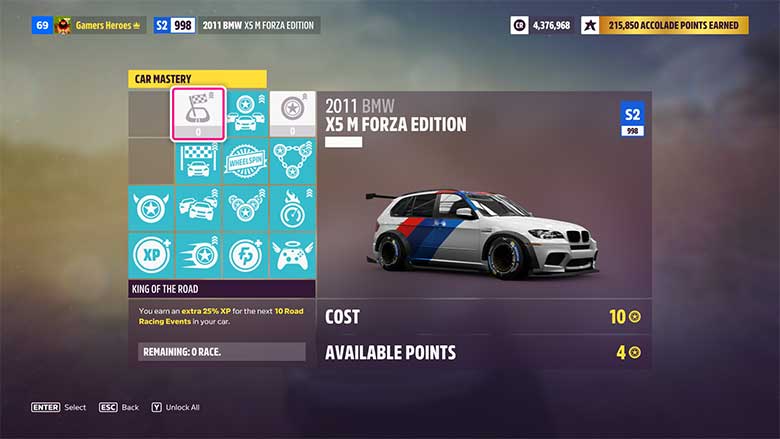 Whatever you’re doing in Forza Horizon 5, you’re getting rewarded. Nailing that perfect drift on the first corner of the race. Hitting top speed down a straight on the way to the next race. Hitting massive air on a jump that takes you over a crater on an active volcano, you get points for everything. Every vehicle has a Car Mastery level, earning experience points for simply using the vehicle, unlocking more bonuses and buffs as you progress.