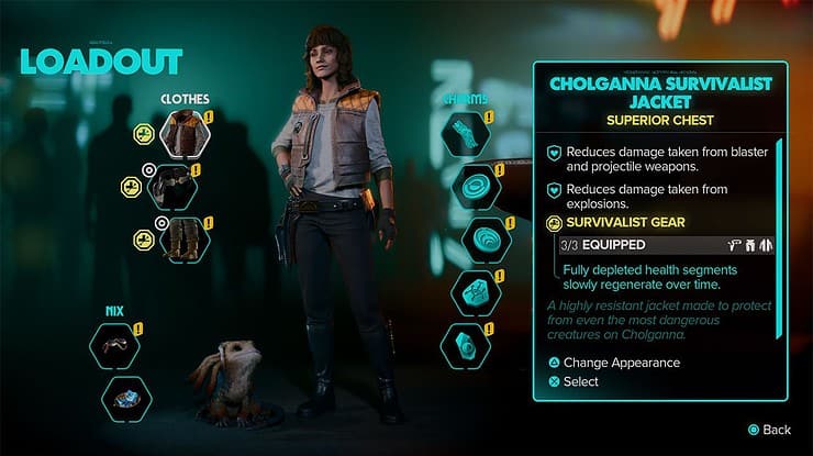 There are two types of gear sets in Star Wars Outlaws, variation and unique. Variations, such as the Ruffian and Survivalist set, have 6 pieces of equipment to choose from, two for each slot Kay can equip. These belong to the same set and provide the same set bonuses, but you can pick and choose between individual pieces for specific bonuses.